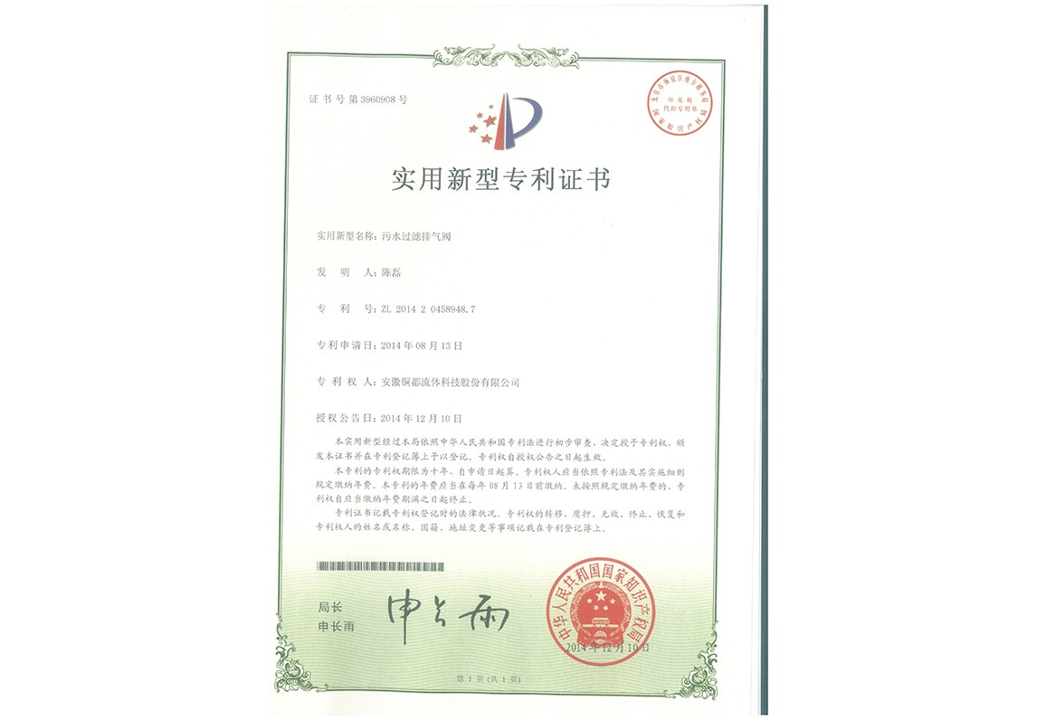 您當前的位置: 首頁 > 走進我們 > 榮譽資質 > 專利證書