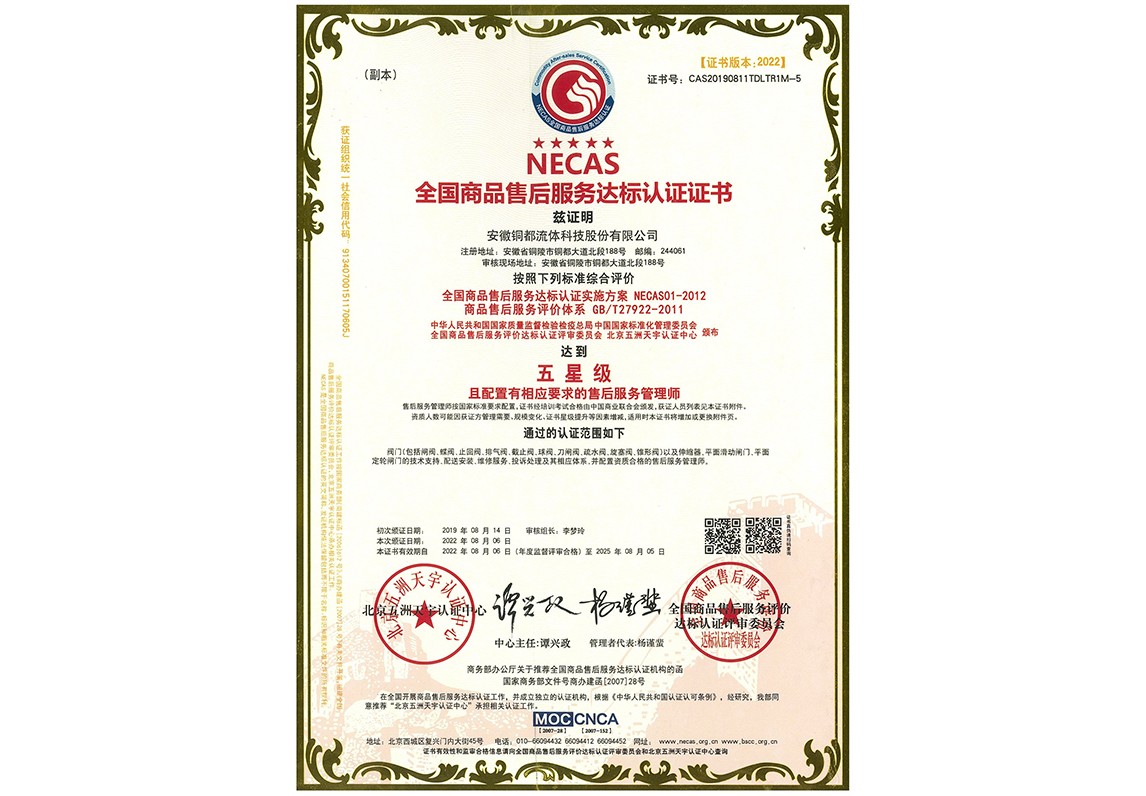 售后服務(wù)達(dá)標(biāo)認(rèn)證證書