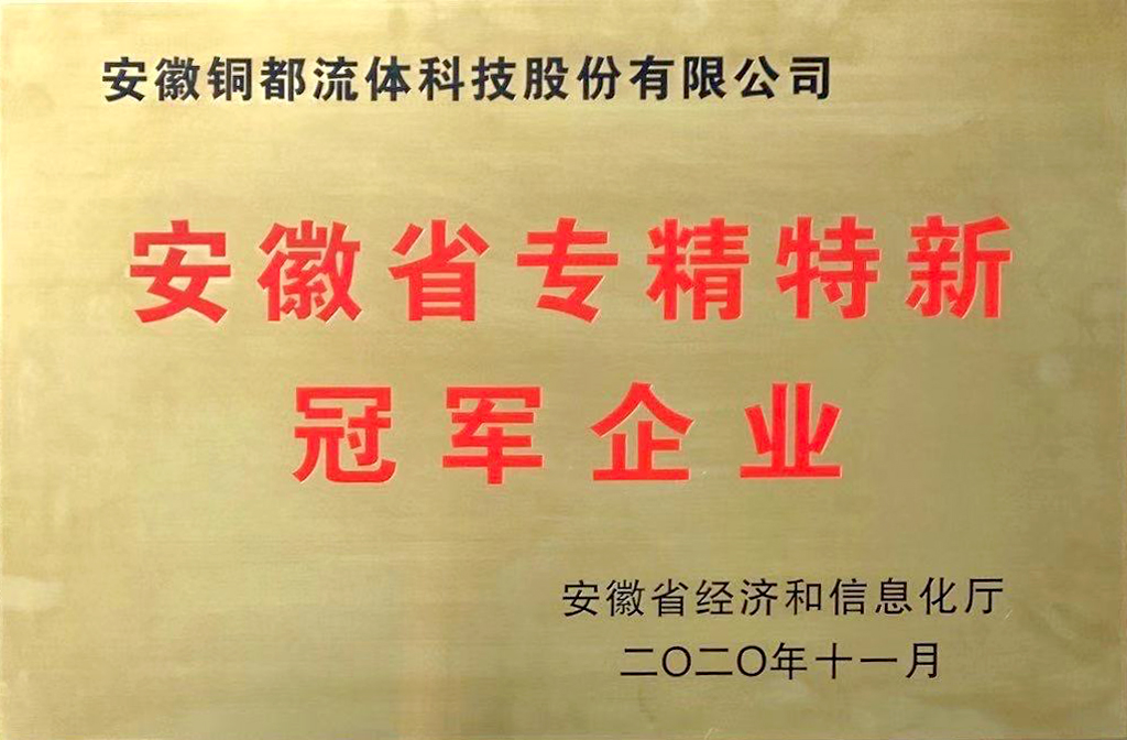 銅都流體榮獲2020年度“安徽省專精特新冠軍企業(yè)”,子公司英…