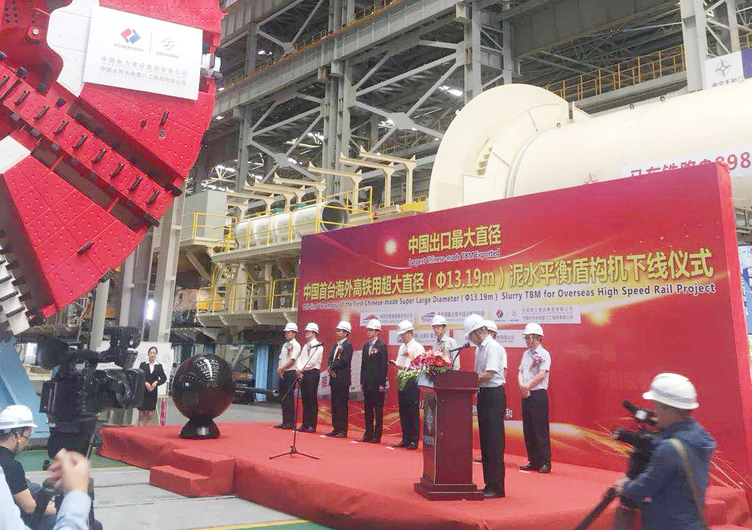 9月29日,由中交天和研制的直徑13.19米泥水平衡盾構(gòu)機,在江蘇常熟舉行下線儀式,助力“一帶一路”建設(shè),獻禮國慶。此盾構(gòu)機是用于印尼雅萬高鐵1號隧道施工,是近來亞洲鐵路建設(shè)中大直徑盾構(gòu)機,將再次刷新中國出口海外超大直徑盾構(gòu)機制造紀錄。