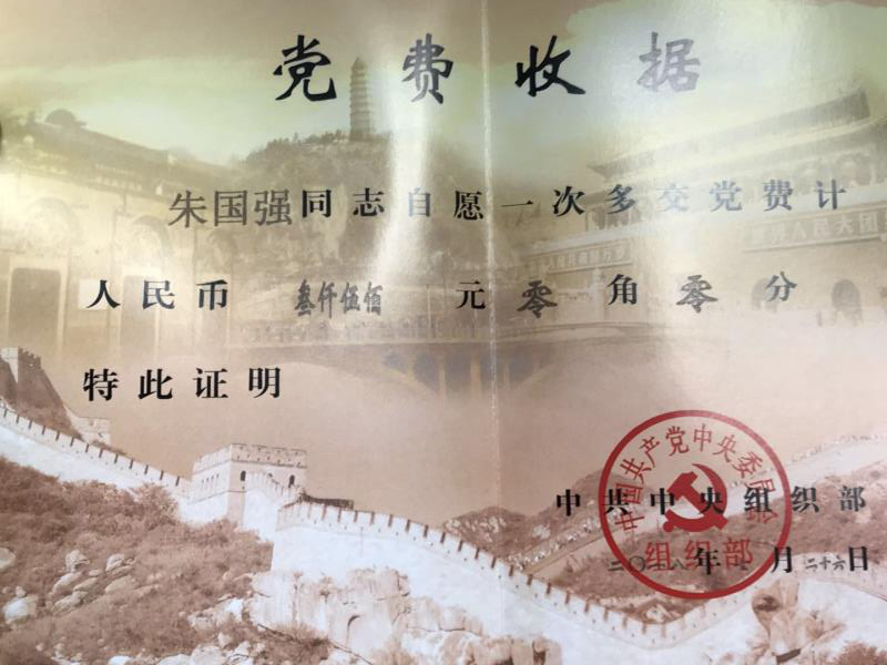 公司鉚焊車間員工、共產(chǎn)黨員朱國強(qiáng)同志,主動將自己獲得"銅陵好人"榮譽的獎勵金3500元,作為特殊黨費上交,受到中央組織部的充分肯定和贊揚,并頒發(fā)特殊《黨費收據(jù)》證書。