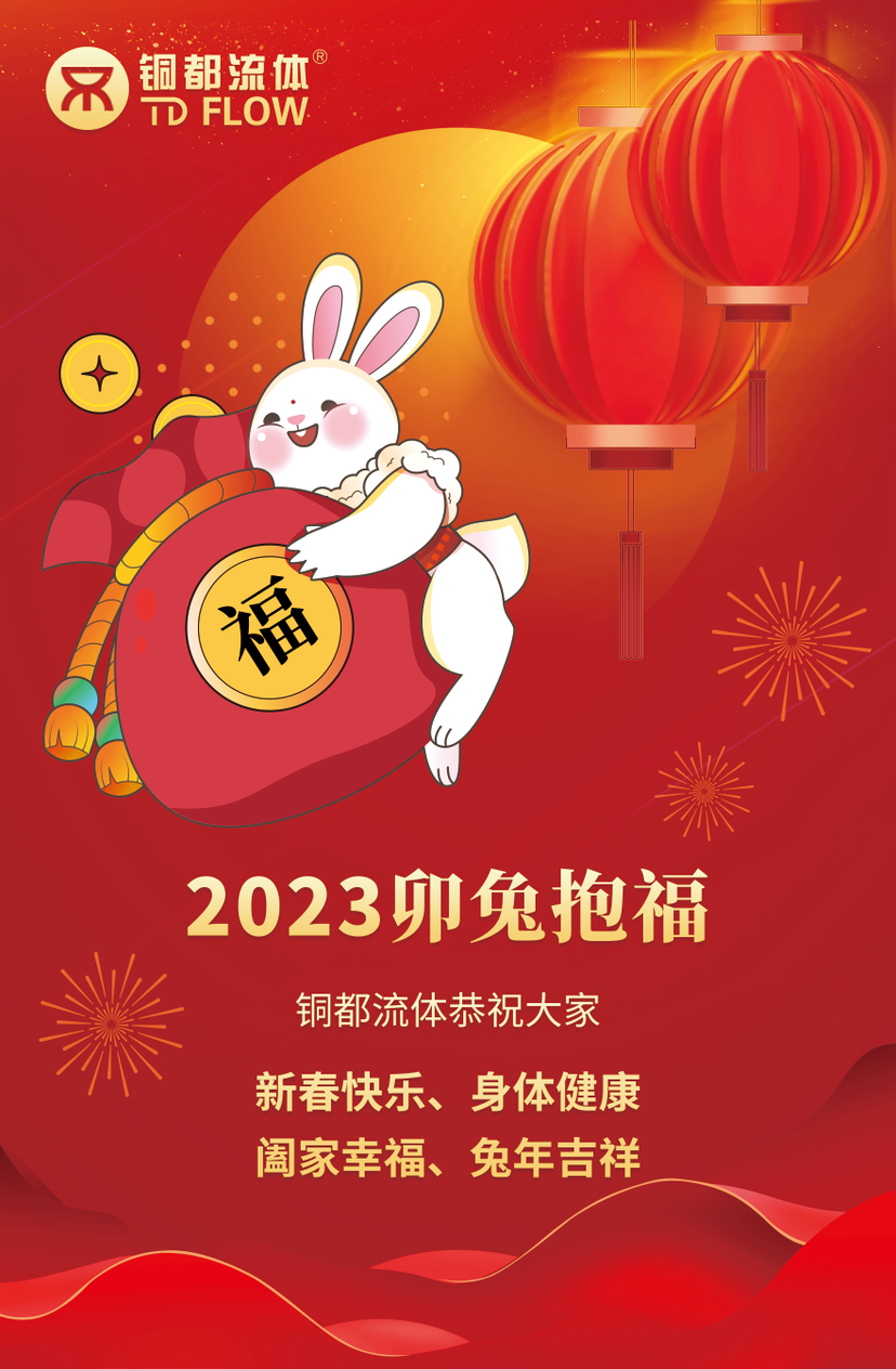 日月其邁,歲律更新。轉(zhuǎn)眼間, 2023年新春佳節(jié)正闊步走來,值此歡慶之際,銅都流體向一直關(guān)心支持公司發(fā)展的各界領(lǐng)導(dǎo)、廣大客戶朋友們以及為公司付出辛勤勞動(dòng)和無私奉獻(xiàn)的全體員工們致以衷心的感謝和誠摯的新春?jiǎn)柡颍?