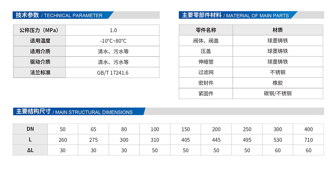 伸縮過濾器是過濾器和伸縮接頭的組合,它也是輸送介質(zhì)管道上不可缺少的一種裝置,通常安裝在減壓閥、泄壓閥、定水位閥或其它設(shè)備的進(jìn)口端。當(dāng)管道中的介質(zhì)進(jìn)入過濾器時,介質(zhì)通過濾網(wǎng)進(jìn)入被連接的閥門中,而雜質(zhì)則留于過濾桶內(nèi),使各類閥門不會由于機(jī)械雜物卡入密封圈而失靈。另加不銹鋼伸縮拉桿,補償管道尺寸,安裝靈活。
