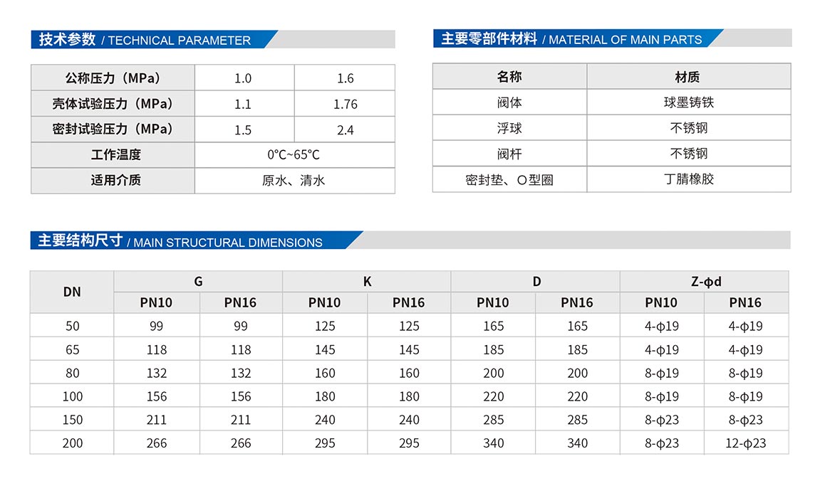 5、浮球、閥桿采用不銹鋼制成,強(qiáng)度高,耐磨耐腐蝕性強(qiáng),使用壽命長(zhǎng)。
